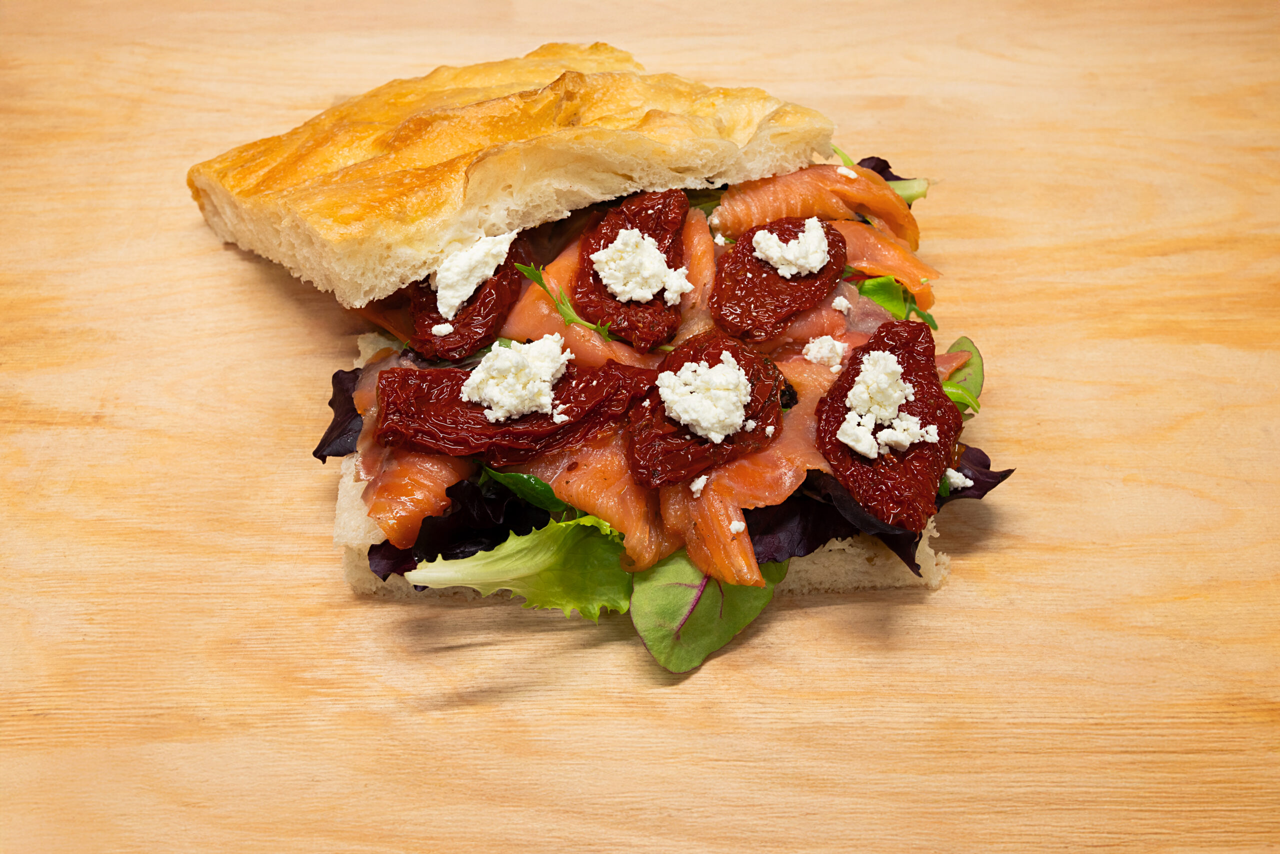 .SALMONE AFFUMICATO, CAPRINO, POMODORI SECCHI, INSALATA