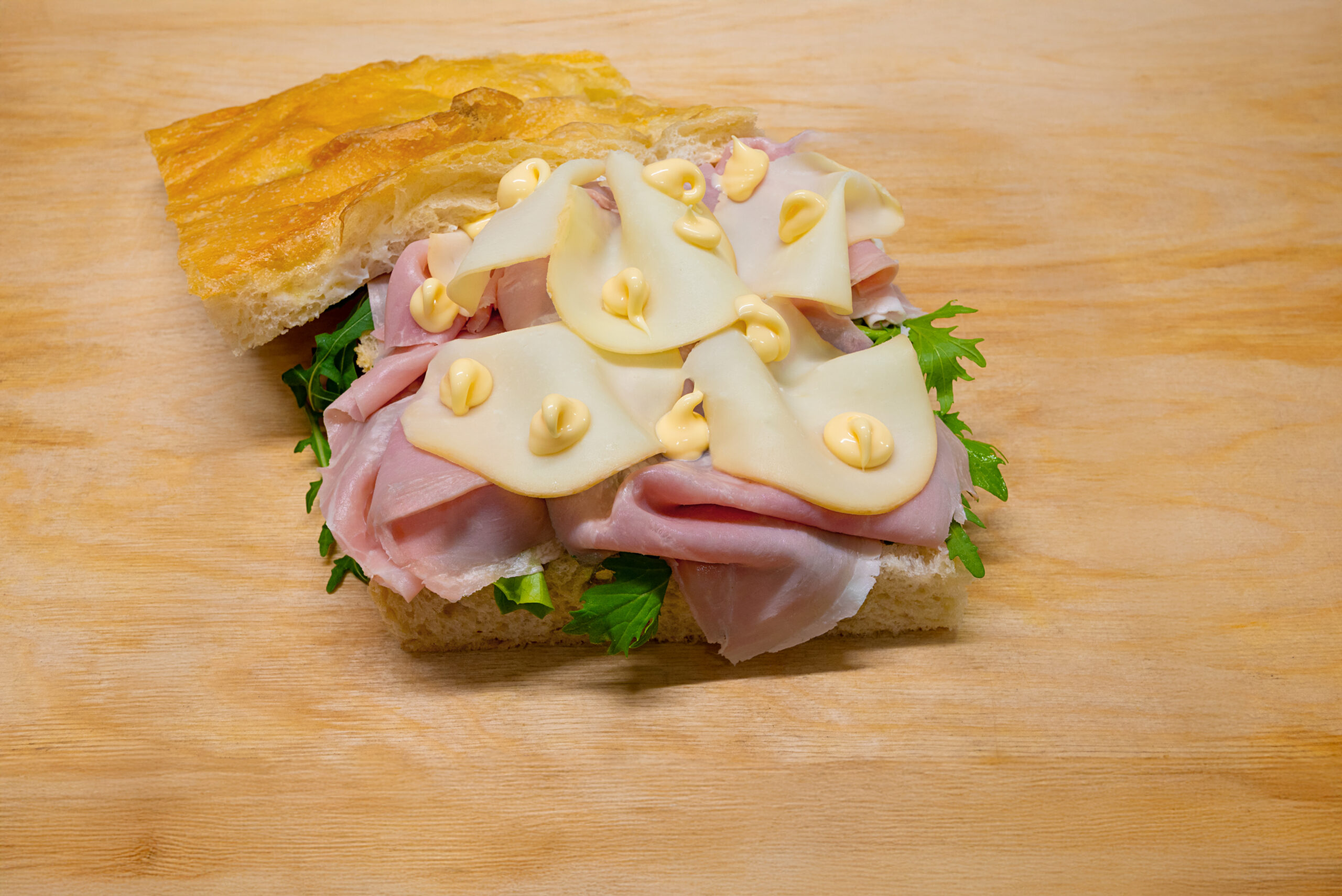 Prosciutto cotto, scamorza, maionese, insalata.