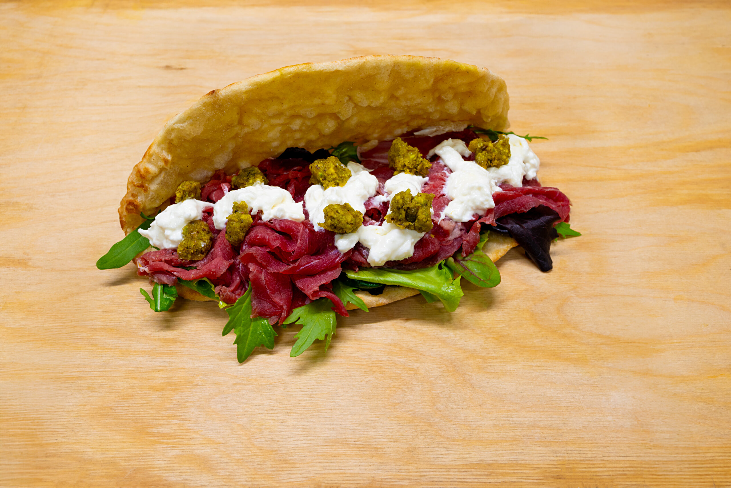 Carne Salada, Stracciatella, Pesto di Pistacchio, Insalata Mista