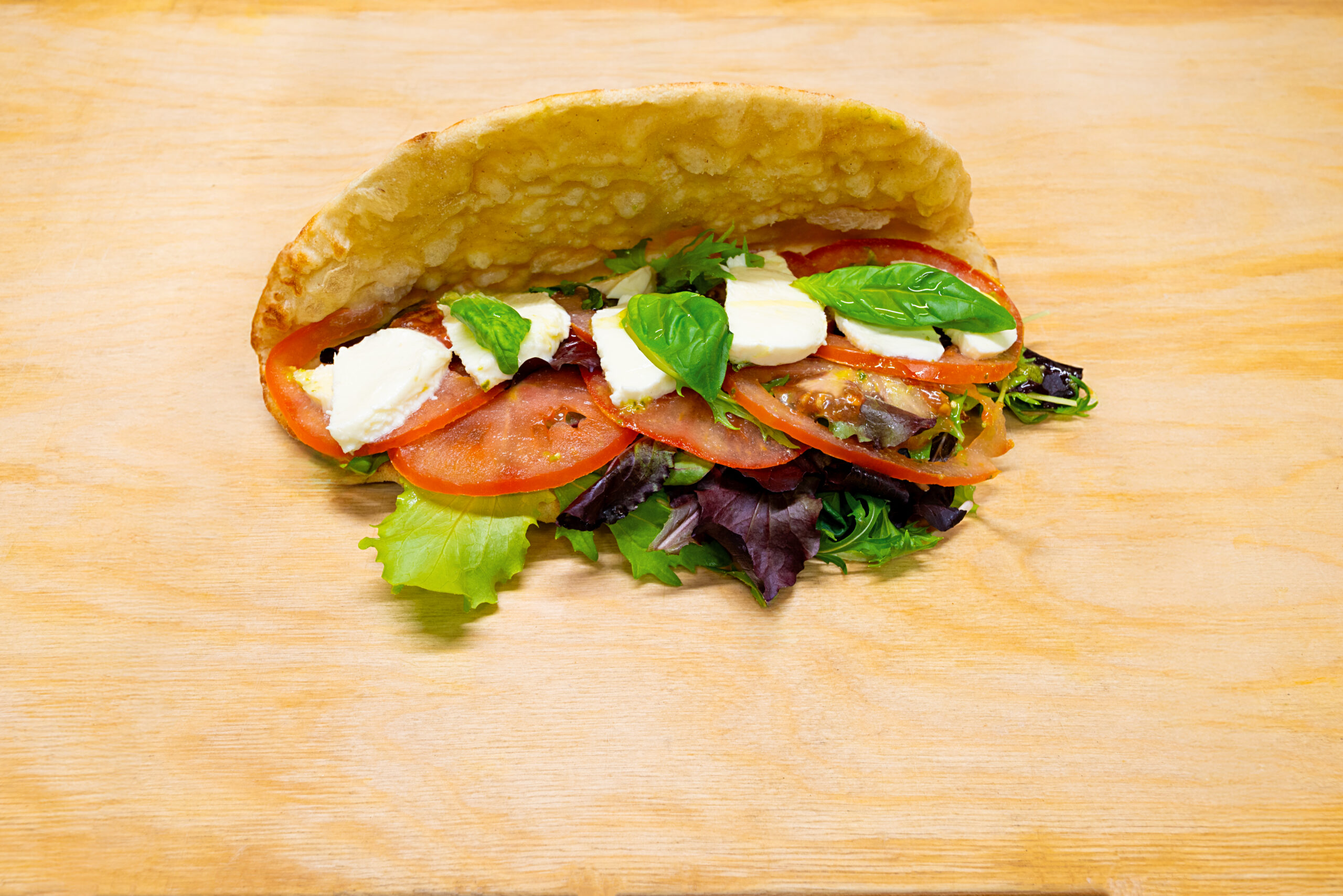 Pomodoro a Fette, Mozzarella Fior di Latte, Basilico, Olio EVO, Insalata