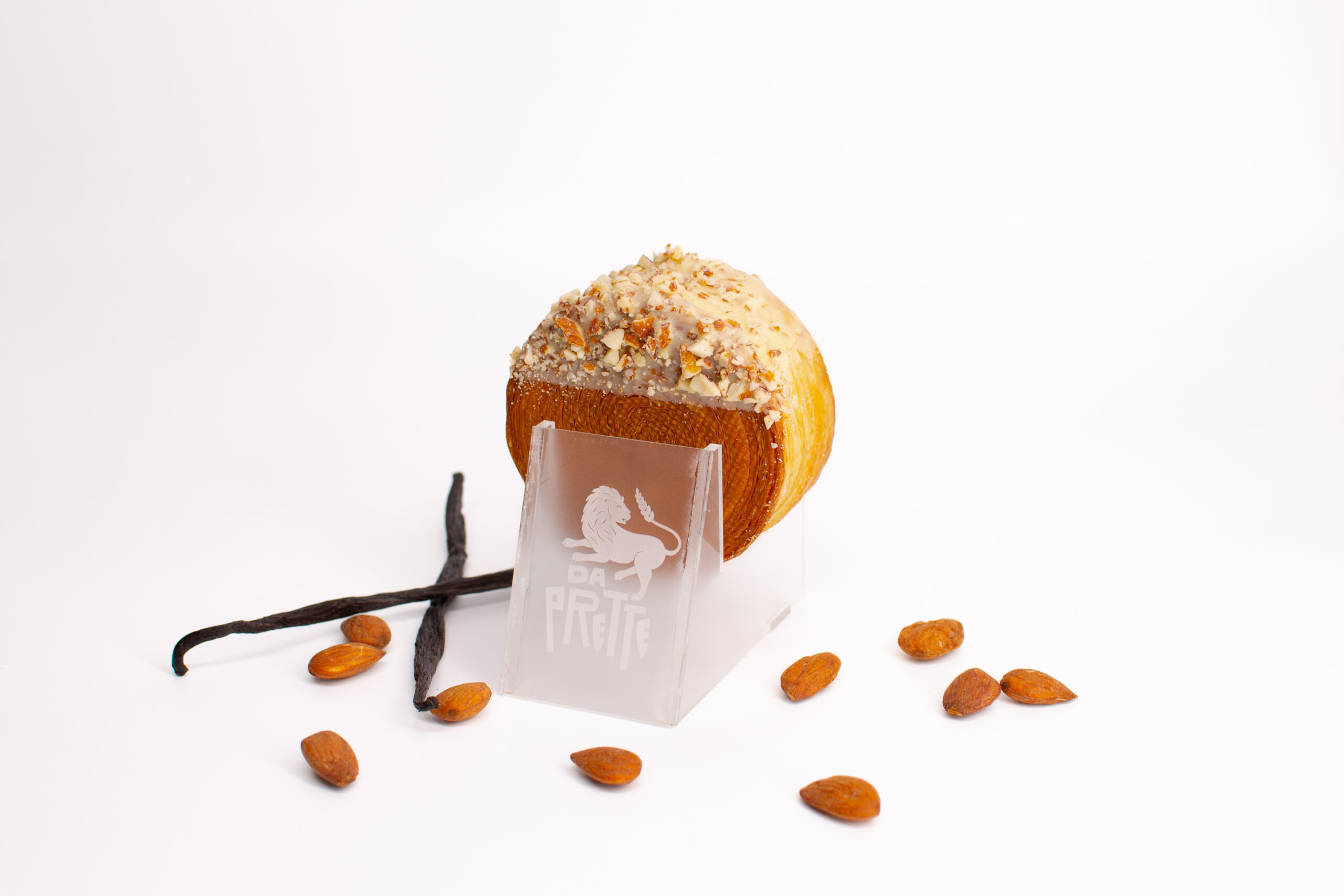 Sfoglia artigianale dalla nuova consistenza, farcita con crema pasticcera vellutata e impreziosita da mandorle croccanti. Un dolce raffinato che unisce tradizione e innovazione in un formato irresistibile.